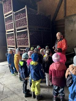 Am 01.11.23 herrschte große Aufregung unter den zukünftigen Schulkindern der Kita "Haus der kleinen Füße", als Gerhard Borchert mit seinem Traktor und Planwagen vor der Einrichtung haltmachte. 21 neugierige Schulanfänger und drei Erzieherinnen begaben sich auf einen aufregenden Ausflug zum Hofladen. Herr Borchert nahm sich die Zeit, den Kindern zunächst die zwei beeindruckenden Silos zu zeigen, in denen verschiedene Düngemittel für seine landwirtschaftliche Arbeit gelagert werden. Anschließend führte er die Gruppe in die Halle, in der noch die großen roten Zwiebeln aufbewahrt werden. Die Kinder konnten an den zahlreichen, riesigen, leeren Metallkörben sehen, wie erfolgreich der Bauer in diesem Jahr bereits verkauft hatte.