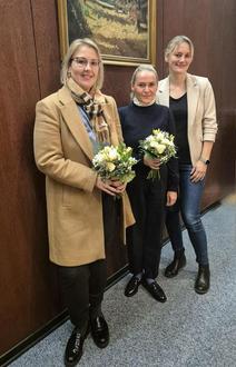 Fachbereichsleiterin Sophie Tinscher gratulierte Frau Süß und Frau Matthäus-Russo zur Wahl und überreichte einen Blumenstrauß.