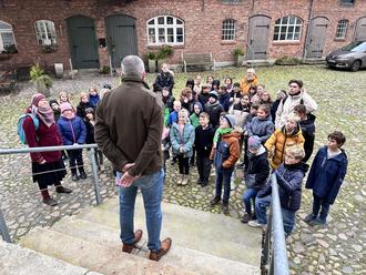 Sind wir auf einer Reise über das Meer? Nein, das sind Fachbegriffe des Textilunterrichts! Das Weben ist eines der ältesten Handwerke der Menschheit und wurde schon vor tausenden von Jahren genutzt. Durch das Verkreuzen von Fäden wurden Gewebe hergestellt und daran hat sich bis heute auch kaum etwas geändert. Unsere Jeans oder T-Shirts werden nach demselben Grundprinzip wie die Tuchen unserer Vorfahren hergestellt. Wie so ein Webstuhl mit Kette und Schiffchen von früher aussieht, das konnten unsere Viertklässler/-innen am 8. November im Museum der Burg Brome sehen. In zwei Gruppen führte uns Dr. Christian Frey durch die Ausstellung und ließ uns staunen: Schwebende Sessel, Schuster- und Holzarbeit, mittelalterliche Waffen und sogar Fossilien gab es zu sehen. Und was hat das nun mit unserem Unterricht zu tun? In Vorfreude auf das bevorstehende Weihnachtsfest stellen wir zurzeit im Werken-Textil-Unterricht tolle Bilder mit Farbe, Nagel und Faden her. Es wird gehämmert, geknotet, gewebt, gewickelt und gefädelt. Natürlich darf auch ein wenig Glitzer nicht fehlen. Auf die Ergebnisse können sich schon die Familien der Kinder freuen - mehr verraten wir noch nicht!