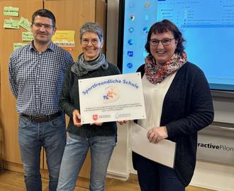 Jan Geppert, Fachberater für Sport beim Regionalen Landesamt für Schule und Bildung in Braunschweig, überreichte der Rektorin Frau Treptow-Lampert und Frau Steinort als Fachleiterin für Sport das Zertifikat. Alle Lehrkräfte freuen sich über diese Auszeichnung und sind stolz, dass sich viele Schüler in der heutigen Zeit noch für bestimmte Sportarten motivieren lassen.