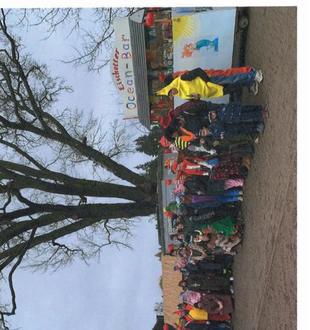 Und es klappte alles. Unterdessen hatten sich achtzig verkleidete Eischotter/innen eingefunden, um den dreistündigen Schnorrerumzug durch das Dorf zu beginnen. Fastnacht ist ja ein Tag der Ausgelassenheit. Der Winter wird mit Lärm und Maske ausgetrieben, bevor die Fastenzeit beginnt. In der Küche waren inzwischen die Köchinnen Johanna, Yvonne, Sandra, Petra und Francesca tätig, um den Eierback vorzubereiten. Insgesamt nahmen etwa 100 Personen an den Tischen Platz, um bei Bier und Wasser das Geschnorrte zu verzehren. Es war schon eine große Anstrengung, das alles zu organisieren.