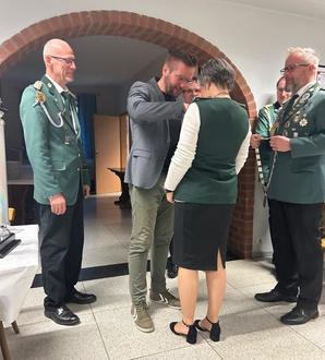 SGB Bartels beim Anbringen des Königsorden an die neue Würdenträgerin Tanja Böse