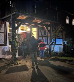 Jeder Abend hatte seinen eigenen, besonderen Charakter: Mal wurde gemeinsam gesungen, mal aus besinnlichen oder heiteren Texten vorgelesen, mal sorgte Musik für eine stimmungsvolle Atmosphäre. Ein besonderer Höhepunkt war der Auftritt der Jagdhornbläser, der viele Zuhörerinnen und Zuhörer begeisterte. Feuerschalen und Feuerkörbe, liebevolle weihnachtliche Dekoration und das warme Licht der Lichterketten sorgten für eine gemütliche Atmosphäre und ließen die dunklen Abende ein Stück heller werden.