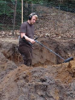 Der Referent Dr. Mario Pahlow bei der Suche auf dem Grundstück des sogenannten Göhrde-Mörders