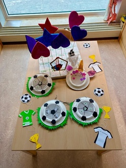 Mit viel Freude und Fantasie entstanden bunte Fußball- und Einhornlaternen, Fusballmobiles, funkelnde Styroporherzen, Sterne mit Glitzer – und noch vieles mehr.