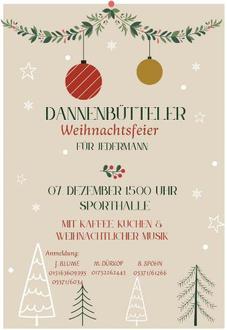 Am 7. Dezember um 15 Uhr ist wieder Weihnachtsfeier für alle Dannenbüttlerinnen und Dannenbüttler. Bei einem bunten Programm mit Kaffee und Kuchen wollen wir gemeinsam ein paar gemütliche Stunden verbringen
