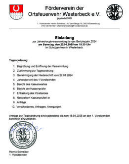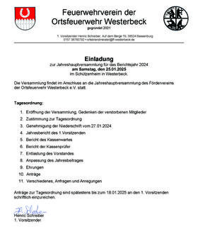 Liebe Mitglieder der Vereine der Freiwilligen Feuerwehr Westerbeck,
