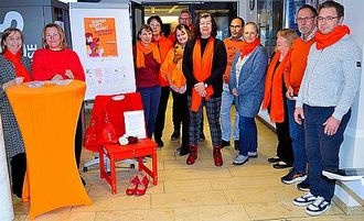 Als Zeichen der Solidarität haben wir wieder den von der Lebenshilfe gefertigten roten Stuhl, sichtbar auch für alle Besucher des Rathauses, aufgestellt. Der leere Stuhl steht symbolisch für die vielen ermordeten Frauen. Den Gedenk- und Aktionstagen schloss sich auch die Gemeindeverwaltung an. Um ihre Solidarität mit den Ideen der Bewegung zu signalisieren, tragen die Mitarbeiterinnen und Mitarbeiter ein orangefarbenes Kleidungsstück in der markanten Farbe getreu des Mottos „Orange the World!“ (Färbe die Welt orange!“). Als Gleichstellungsbeauftragte der Gemeinde freue ich mich sehr über den großen Zuspruch dieser Aktion und sage hierfür ganz herzlich Dankeschön.