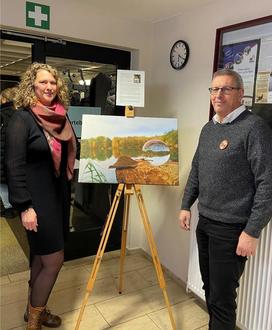 (Links: Künstlerin Nadine Müter-Maier, Rechts. Dirk Behrens, Allgemeiner Vertreter des Bürgermeisters, der die Ausstellung mit eröffnet hat)