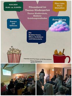 Am 18.01.24 fand in unserem Kindergarten ein Gesamtelternabend zum Thema Kinderschutz statt. Die Elternvertreter besorgten dafür dem Film „Good enough parents“, sowie Popcorn und Getränke für einen entspannten Filmabend. Der Regisseur dieses Films nahm uns als Zuschauer mit in die Irrungen und Wirrungen in seinem Alltag des „Eltern seins“. Dort setzte er sich mit Erziehungsmythen und vermeintlich guten Ratschlägen darüber, was Kinder brauchen, auseinander. Der Alltag mit seinem Kleinkind wird humorvoll, liebevoll und sehr ehrlich dargestellt. Die Empfindungen des Regisseurs und auch von seinem Sohn, während der einzelnen Situationen, werden verständlich und deutlich vermittelt.