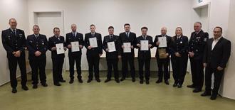 Die Beförderungen im Einzelnen: Felix Bellwart, Martin Klose und Oliver Wild – Feuerwehrmann; Henrik Behnke, Tobias Mann und Artur Ponomar – Oberfeuerwehrmann.