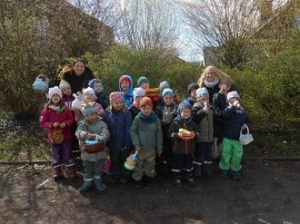Auch in diesem Jahr war der Osterhase wieder besonders fleißig. Während eines ausgiebigen Osterfrühstücks zwischen Hefezopf und Marmelade machte er sich heimlich auf den Weg und bestückte das Außengelände mit den befüllten Osterkörbchen der Kinder. Das war vielleicht eine Überraschung, als dann endlich alle Kinder ihre Osterkörbchen suchen durften und ein jeder über das ganze Gesicht strahlte. Wir wünschen allen Großen und Kleinen ein frohes Osterfest!