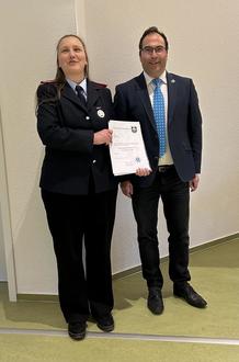 Zukünftige stellv. Ortsbrandmeisterin Claudia Banz und Bürgermeister Jochen Koslowski