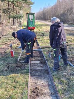 heißt es bei der Moorbahn, bevor es nach der Winterpause wieder in die Fahrsaison geht. Unser Technikteam um Thomas ist jetzt fast täglich draußen im Moor, um die Gleisanlagen, die Aussichtsplattform und die Haltepunkte im Moor zu überprüfen. Es gilt Verbindungen zu prüfen, Schrauben nachzuziehen, defekte Bohlen auszutauschen und Weichen freizulegen. Eine ständige Aufgabe ist es, die Birken von den Gleisen fernzuhalten. Wenn jemand sagt, Mensch eine Tätigkeit an der frischen Luft im Moor wäre auch was für mich, bitte einfach unter Tel Nr. 0151 431 648 29 melden.