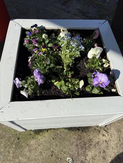 Der Pflanzkasten am Bücherschrank wurde von Peter Weber gesäubert und mit einer Frühjahrsbepflanzung versehen.
