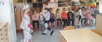 Das TAKI - Projekt der Sonnengruppe wurde mit einer spektakulären Modenschau mit phantasievoll gebastelter Papierkleidung beendet.