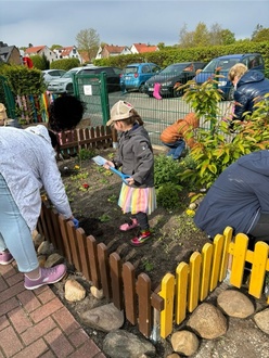 Unsere Schuwidus hatten auch in diesem Jahr einen Schlafabend. Es gab leckere Hotdogs zu essen. Anschließend haben sie eine Schnitzeljagd gemacht, bei der sie das Dorf erkundet und nach Hinweisen durchsucht haben. Die ersten gesäten Gemüsesorten wurden von den Kindergartenkindern geerntet. Sie waren durch das wechselnde Wetter so riesig geworden, dass die Kinder sie schon frühzeitig verzehren konnten. Außerdem hat die Kindertagesstätte eine Matschküche gespendet bekommen. Diese wurde gleich von allen Kindern in Beschlag genommen.