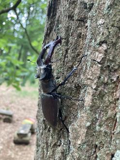Hirschkäfer sind die größten europäischen Käfer und die Wurzelkinder hatten diese Woche einen bei sich im Wald zu Besuch. Die männlichen Käfer werden meist deutlich größer als die weiblichen und hierbei handelte es sich um einen männlichen Hirschkäfer.