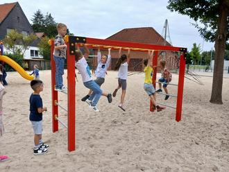 Nach den langen Sommerferien wartete auf die Kinder der Findorff-Schule eine große Überraschung: auf dem Schulhof gibt es gleich vier neue Spielmöglichkeiten! In den Ferien waren die Mitarbeiter der Gemeinde Sassenburg fleißig und haben die tollen neuen Spielgeräte aufgebaut. Ein Klettergerüst mit Rutsche, Wackelbretter, eine tolle Wippe und eine Hangelbrücke laden nun zum gemeinsamen Spielen in der großen Pause ein. So macht der Schulstart gleich doppelt soviel Spaß!