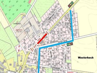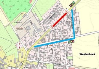 Eine innerörtliche Umleitungsstrecke ist aktuell -aus der Ortsmitte kommend-über die Route „Ringstraße“ - „Auf dem Berge“ und Hagenfeldstraße“ eingerichtet.
