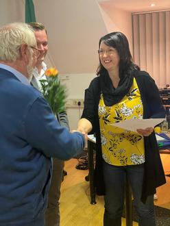 Herr Kleine gratulierte ihr anschließend gemeinsam mit dem Stadtratsvorsitzenden, Herrn Ewertowski. Sie wünschten ihr alles Gute und hoffen auf eine gute Zusammenarbeit.