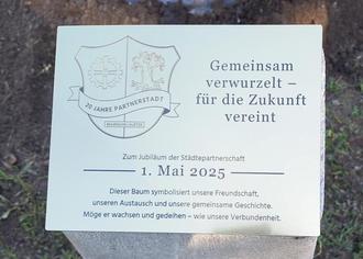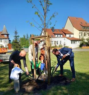 Im Anschluss wurde als Zeichen der Freundschaft ein Partnerschaftsbaum auf dem Adolph-Frank-Platz gepflanzt.