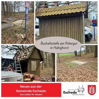 Für das Frühjahr ist ein Neubau bereits eingeplant. Ursprünglich wurde davon ausgegangen, dass die bestehende Bushaltestelle in Habighorst bis zur Neuerrichtung weiter genutzt werden kann; dies war jedoch leider nicht möglich.