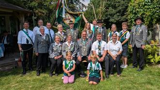 Nachdem die Jungschützenschützen bereits am Donnerstag mit dem Verteilen von Birken das Dorf geschmückt hatten, konnte am Freitagabend das Schützenfest mit einer Rekordbeteiligung an Schützinnen und Schützen und der Vorstellung neuer Vereinsmitglieder starten. Die Vorsitzende betonte bei der Kranzniederlegung am Friedenshain das Hass und Hetze, die in heutiger Zeit leider immer wieder gegenwärtig sind, aber in unseren Schützenvereinen keinen Platz haben und finden dürfen.