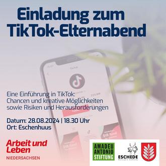 Ich freue mich auf Ihren zahlreichen Besuch auf dem TikTok-Elternabend am Mittwoch, 28.08.2024 um 18:30 Uhr im Eschenhuus in Eschede.