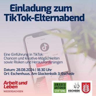 Ich freue mich auf Ihren zahlreichen Besuch auf dem TikTok-Elternabend am Mittwoch, 28.08.2024 um 18:30 Uhr im Eschenhuus in Eschede.
