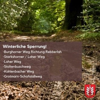 Die Gemeinde weist darauf hin, dass die Sperrungen nur solange aufrechterhalten werden, wie es die Witterung erfordert.
