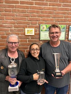 von links: Damenpokal, Ute Beyer, Hammelkönigin Lily Wagner, Herrenpokal Thorsten Last.