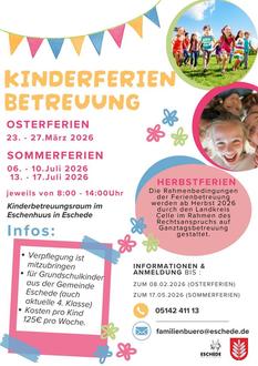 Für die erste Osterferienwoche sowie die ersten zwei Sommerferienwochen wird die Gemeinde Eschede eine Kinderferienbetreuung anbieten.