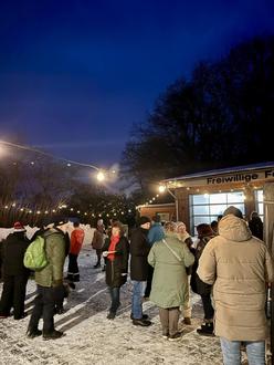 Trotz der knackig kalten Witterung und dem vielen Schnee fanden viele Besucher den Weg zum Dorfplatz und genossen Bratwurst und Glühwein, sowie auch alkoholfreie Getränke in der Gemeinschaft.