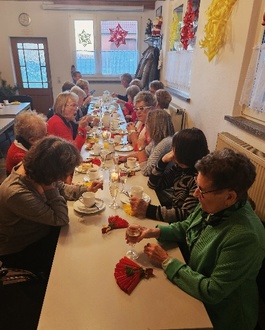 Am 01.12.2024, fand im Dorfgemeinschaftshaus in Stöckheim pünktlich zum 1. Advent, das alljährliche Adventskaffeetrinken statt, wozu alle Einwohner aus Stöckheim recht herzlich eingeladen waren. Der Feierraum des Dorfgemeinschaftshauses wurde dafür vorweihnachtlich geschmückt. An den Fenstern wurden große selbstgebastelte Papiersterne als Fensterschmuck angebracht, welche zum Teil beim Bastelnachmittag, am 21.11.2024 entstanden sind. Weihnachtliche Dekoration, wie ein geschmückter Weihnachtsstrauß aus Tannengrün und weihnachtliche Figuren, schmückten die Tische und den gesamten Feierraum zum Adventskaffeetrinken festlich aus
