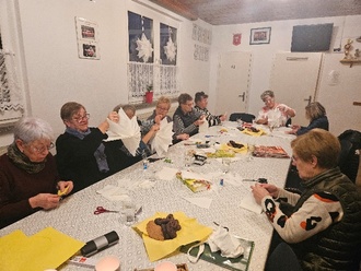 Mit etwas weihnachtlichem Gebäck und dem vorweihnachtlich geschmückten Feierraum des Dorfgemeinschaftshauses, war es ein schöner, lustiger und geselliger Bastelnachmittag und Abend in Stöckheim.