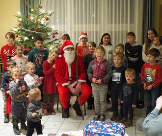 Bald klopfte es an der Tür. Der Weihnachtsmann trat herein und sofort fingen die Kinderaugen an zu strahlen. Viele schöne Weihnachtslieder und Gedichte wurde für den Weihnachtsmann vorgetragen, bevor jedes Kind ein kleines Geschenk überreicht bekam.