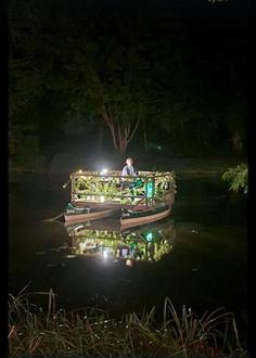 Gegenüber des Wunschbaumes, auf dem Wasser, gab es eine weitere Attraktion. Auf einem auf zwei Kanus zusammengebauten, wunderbar dekorierten und beleuchteten Floß, spielte Andre Ulbricht aus Peertz auf seinem E-Piano zauberhafte Musik. Viele Besucher standen träumend am Ufer.