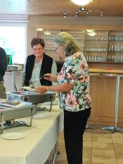 Das Seniorenteam tafelte neben den Pellkartoffeln wieder viele andere schöne Leckereien zum gemütlichen Mittagessen auf. Die zahlreich erschienenen Senioren ließen es sich gut schmecken.