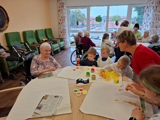 „Alle hatten großen Spaß – sowohl die Kinder als auch unsere Bewohnerinnen und Bewohner“, berichtete das Betreuungsteam des Hauses. Zur Begrüßung und zum Abschluss sangen die Kinder fröhliche Lieder, wofür sie mit kräftigem Beifall und kleinen Süßigkeiten belohnt wurden. Die entstandenen Kunstwerke sollen demnächst im Heim ausgestellt werden.