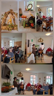 Einen Tag später fand im Haus eine besinnliche Andacht zum Erntedankfest statt. Im Mittelpunkt stand ein liebevoll gestalteter Gottesdienst für die Bewohnerinnen und Bewohner, der musikalisch von einer Gitarrenbegleitung untermalt wurde. Gemeinsam wurden bekannte Kirchenlieder gesungen und Worte des Dankes gesprochen.