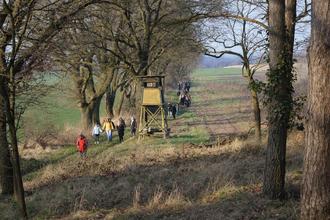 Danach setzte sich die Wanderschar wieder in Richtung Schoorberg in Bewegung, bog am Hundsportplatz Richtung B248 ab und zog dann in Richtung Schwarzen Berg weiter. Dort angekommen lagen gut fünf Kilometer hinter uns und wieder wurde eine ausgiebige Pause eingelegt. Als Höhepunkt brausten zwei Wildschweine, die von uns wohl plötzlich Wind bekamen, auf der Wiese am tanglischen Bach, im Vollsprint an uns vorbei. „Sowas sieht man nicht alle Tage!“ war sich die erstaunte Wanderschar einig.