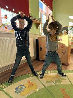 Unsere Kitakinder nutzen jede Gelegenheit, um ihr Hampelmannbarometer immer weiter in die Höhe zu treiben. Sie trainieren zum Beispiel zwischendurch im Gruppenraum, auf dem Spielplatz, während des Sportangebotes in der Turnhalle und auch zu Hause mit ihren Eltern und Großeltern.