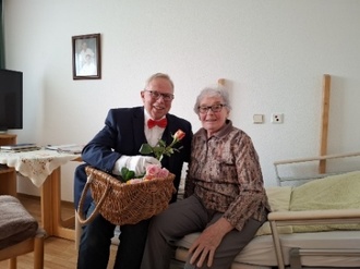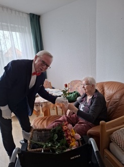 Auch bei uns durfte die Tradition nicht fehlen: Unser „Rosenkavalier“ Hansi, die gute Seele des Hauses, überraschte die Damen und zauberte damit ein Lächeln ins Gesicht.