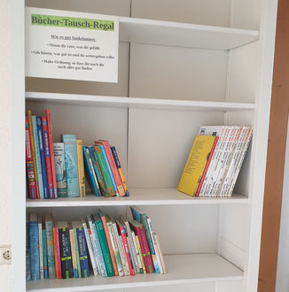 Damit sich der Bücherfundus weiter vergrößert sind alle eingeladen, die Regale zu Hause zu durchforsten und geeignete Bücher in dieses Regal zu stellen. Je hochwertiger der Inhalt, desto besser für unsere Jugend. Auch die Jugendlichen selber können ihre Bestände sichten und ihre alten Schätze im Regal gegen neuen Lesestoff tauschen.