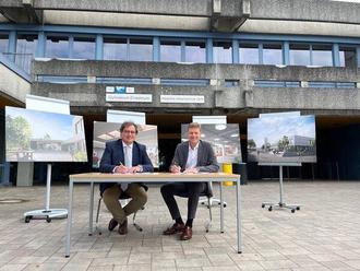 Landrat Axel Flader und Siegfried Wendker von der Firma Goldbeck setzten gestern ihre Unterschriften unter das bisher größte Schulbauprojekt für den Landkreis Celle. Mit der Vertragsunterzeichnung beginnt die umfassende Sanierung und Erweiterung des Schulzentrums Burgstraße – ein zukunftsweisendes Großprojekt für den Bildungsstandort Landkreis Celle und das gleich an zwei Schulen. Auf dem gemeinsamen Campus entstehen für das Gymnasium Ernestinum und die Integrierte Gesamtschule (IGS) drei neue Gebäude, verbunden mit einer durchdachten und nachhaltigen Neugestaltung des gesamten Schulareals und einer damit einhergehenden weiteren Aufwertung des gesamten Quartiers.