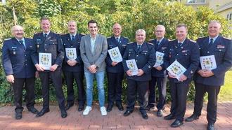 Bei der Veranstaltung (von links): Kreisbrandmeister Volker Prüsse, Axel Kernbach, Michael Haming, Kreisrat Thomas Buchhold, Dirk Heindorff, Uwe Wiechmann, Willi Lucan, Ulf Heinemann, Mark Tranter.