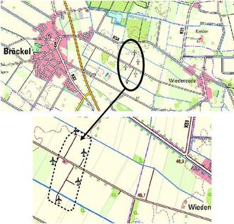 In diesem Bereich soll die im Bebauungsplan Nr. 8 „Windpark Bröckel Süd-Ost“ festgesetzte maximale Gesamthöhe je Anlage von 120 m aufgehoben werden, da in dem Bereich Repowering erfolgen soll.