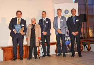 Bei der Preisverleihung: v.l.n.r. Axel Flader (Landrat Landkreis Celle), Gunda Krauss (Stadtratsmitglied München), Christian Heck (Bayerisches Staatsministerium für Wohnen, Bau und Verkehr), Georg Dunkel (Mobilitätsreferent Landeshauptstadt München), André Muno (Geschäftsführer Klima-Bündnis Services)