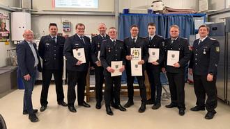 Befördert wurden Martin Stark (Feuerwehrmann), Matthias Noske (Oberfeuerwehrmann), Mattis Cammann und Andreas Scheffler (Hauptfeuerwehrmänner), Alexander Graf (Oberlöschmeister) sowie Hendrik Jürgens (1. Hauptlöschmeister). Andreas Scheffler erhielt zudem das Ehrenzeichen für 25-jährige Verdienste im Feuerlöschwesen.